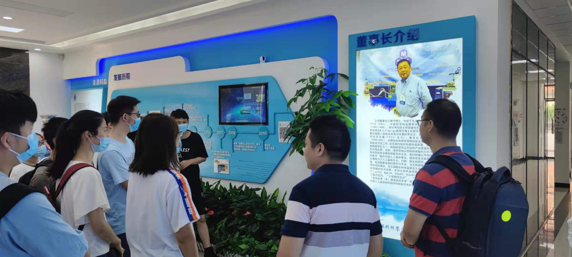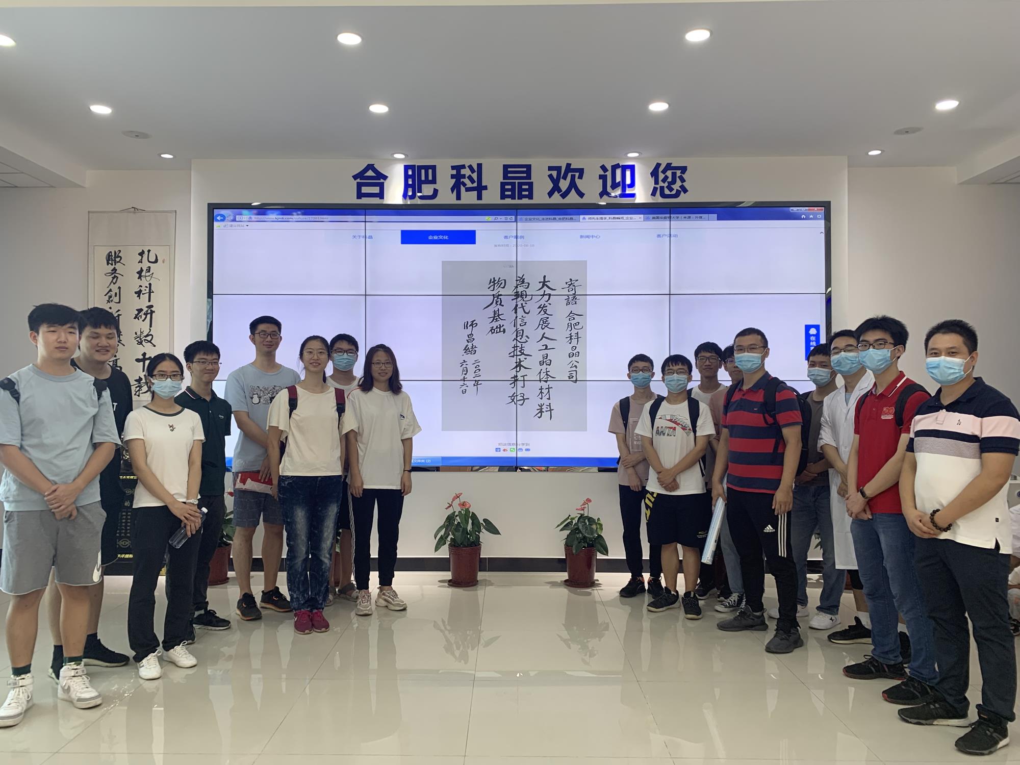 在公司文化背景介紹中,同學們觀看了公司宣傳片,了解了公司基本概況、企業的發展形勢、成果以及公司的發展規劃,感受到了企業文化帶來的豐碩成果。活動最后,中國科大師昌緒英才班學子在師先生為我們科晶提字幅下合影,是一件值得感恩的事情!